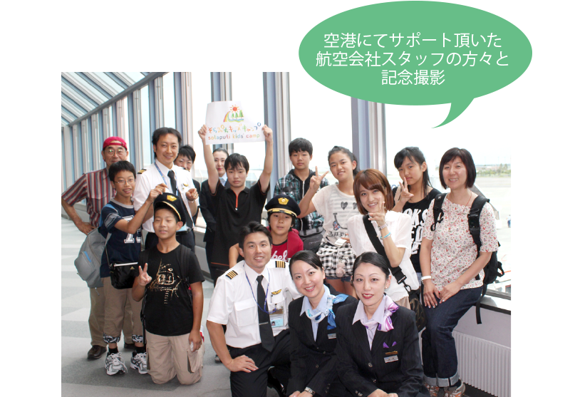 そらぷちキッズキャンプは北海道にあり、ほとんどの参加者が飛行機に搭乗し移動するため、航空会社各社にサポートいただいています。